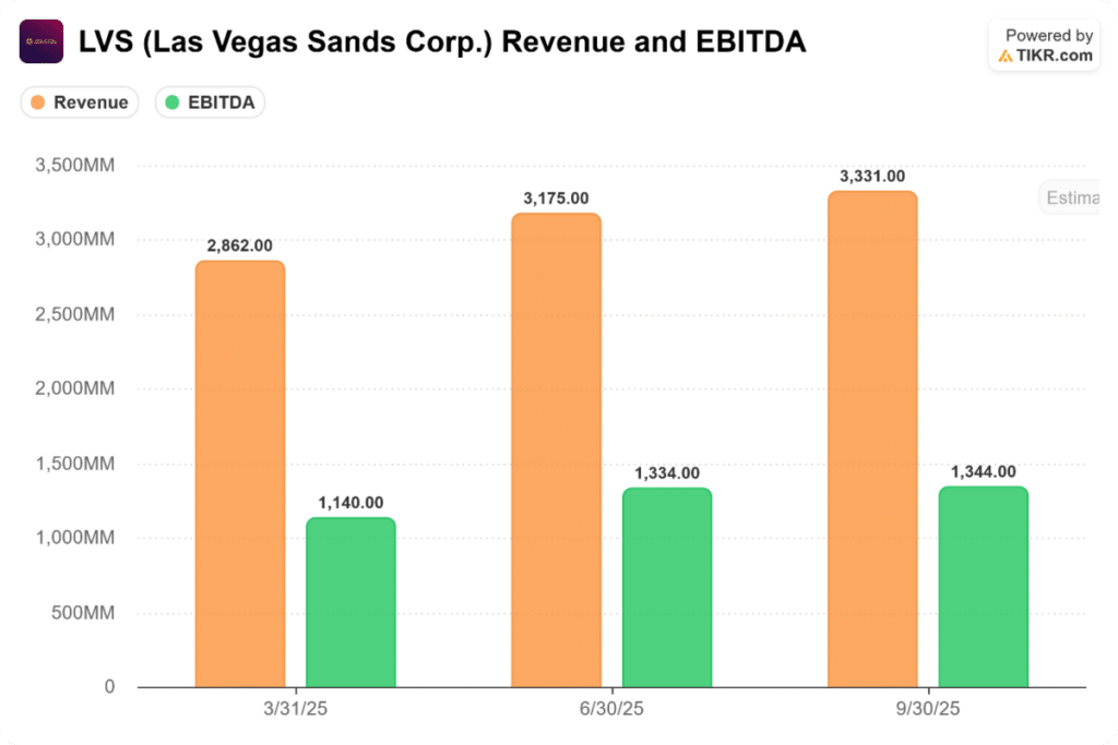 センチュリー・カジノズは先週、わずかに下落した。米株が幅広く反発する中でも、同社株は上昇基調に乗れなかった。市場は、同社のバランスシートが逼迫していることを懸念している。負債総額は10億ドル(約1,591億円)超である一方、市場評価額は4,000万ドル(約64億円)超にとどまる。さらに悪いことに、スティーフェルは同社が今年、フリーキャッシュフローの赤字を計上すると予想している。これにより、すでに脆弱なバランスシートは一層圧迫される見通しだ。